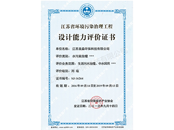 江蘇省環(huán)境污染治理工程設(shè)計能力評價證書-丙級