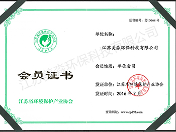 江蘇省環(huán)境保護產(chǎn)業(yè)協(xié)會會員證書