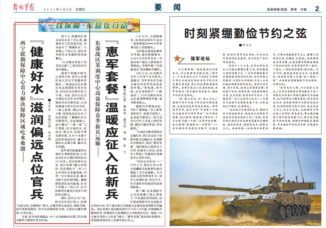 從解放軍報獲悉,前不久,西藏軍區(qū)某兵站官兵有個開心事:隨著美淼智能飲(供)水裝備安裝完成,兵站迎來了“健康好水”,大家喝上了放心水,困擾多年的吃水難題得到徹底解決。