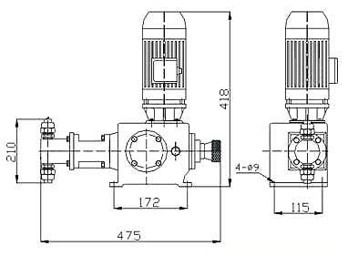 | 型號 | 流量(L/H) | 壓力(Mpa) | 柱塞直徑(mm) | 行程(mm) | 泵速(mm) | 電機功率(kw) | 進出口徑(DN) | 重量(kg) |